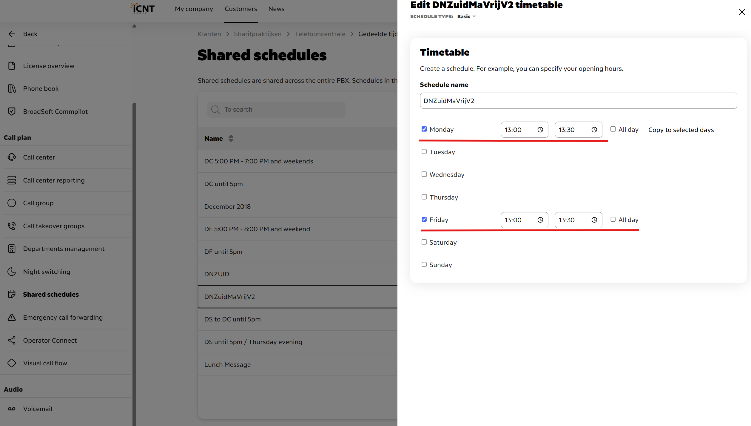 *If clients wants to change their voicemail for a specific lunch period, do the following: